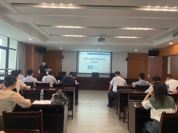 郑俊杰教授结合自身近三十年培养研究生的经历,讨论了卓越人才应具备的素质,告诫研究生们如何学会做人,如何在研究生期间学会做科研,如何学会撰写论文,以及什么样的硕士研究生才适合于攻读博士学位,最后对于研究生如何度过自己的研究生期间的生活给出了一些意见和建议。周航教授介绍了自主研发的具有高透明度和可塑性的透明黏土材料及透明土模型实验系统。郑烨炜教授通过一系列缩尺振动台试验以及二维和三维动力数值模拟,对加筋土桥台的地震动力响应及地震易损性进行了详细介绍。孙逸飞教授介绍了土体分数阶塑性力学方法、相关数值算法及其在部分典型岩土工程边界值问题中的应用,并提出进一步研究所面临的挑战。