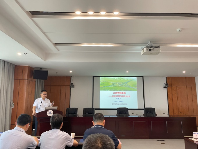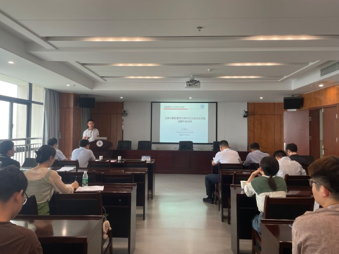 本网讯 7月11日上午,由校党委宣传部主办,土木工程学院承办的第118期“易海大讲堂”在南校区徽风楼21楼第一会议室举行。武汉大学/华中科技大学郑俊杰教授,重庆大学周航教授、武汉大学郑烨炜教授、河海大学孙逸飞教授四位专家做客“易海大讲堂”,分别为我校师生带来题为《从优秀到卓越——谈谈如何度过研究生生活》、《透明土模型实验系统研发及其应用》、《加筋土桥台的动力响应和抗震性能评价》及《土体分数阶塑性力学方法及其在边界值问题中的应用》的精彩报告。党委常委、副校长蔡国军教授参加此次会议,并对郑俊杰教授等一行专家的到来表示热烈欢迎。会议由土木工程学院执行院长张宁主持,土木工程学院副院长陈东、施国栋及专业相关骨干教师、研究生等参加了本次报告会。