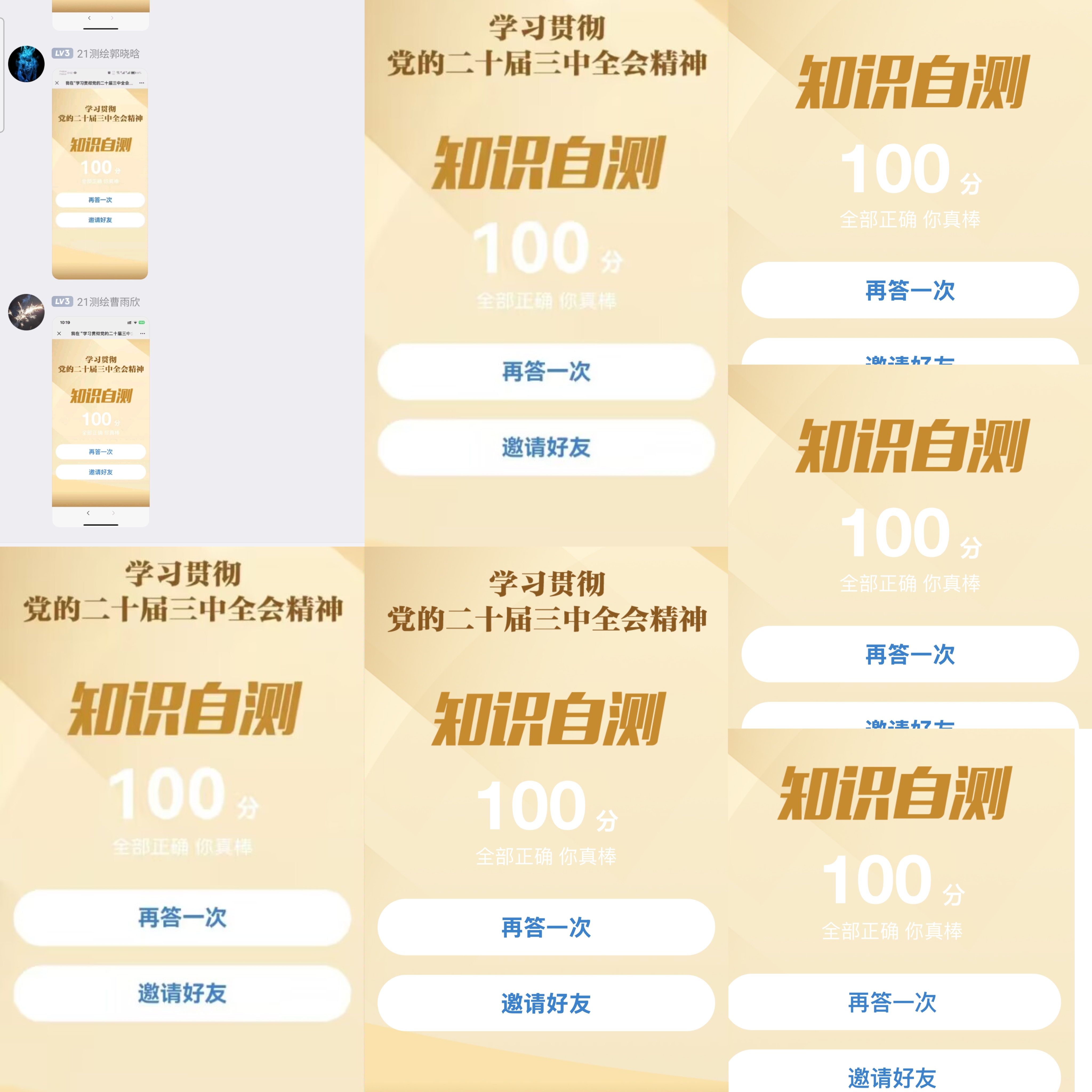 为进一步巩固学习成效,8月13日至14日,测绘党支部组织全体党员通过共产党员网、央视网、学习强国、南方日报“南方+”等媒体平台,认真观看党的二十届三中全会系列解读视频——《高举改革开放旗帜》、中共中央关于党的二十届三中全会新闻发布会以及“学习贯彻党的二十届三中全会精神”系列直播课等内容,更加全面深入领会党的二十届三中全会精神。通过观看学习,支部党员对党的二十届三中全会提出的全面深化改革、推进中国式现代化的总目标,教育、科技、人才等关键领域的改革措施等内容有了更深入、直观地了解。大家纷纷表示将深入领会二十届三中全会的重要意义,奋发有为,努力提升自身综合素质,矢志不渝将全会精神和个人发展结合起来,争取为社会的发展进步提供更多的助力。 应知应会答题