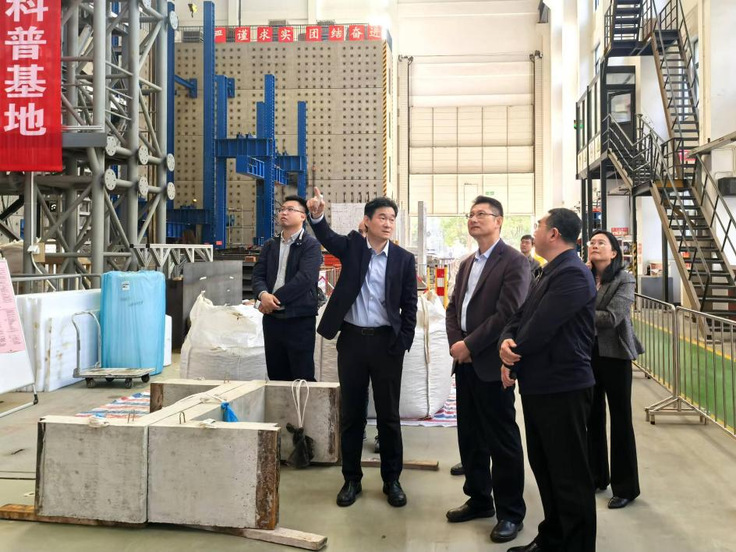 13日下午,马文革一行与东南大学党委常务副书记(正局级)刘攀进行了会谈,双方围绕科技创新、人才培养、教师队伍建设等方面进行了深入交流。会后,东南大学土木工程学院院长郭彤陪同马文革一行来到东南大学振动台实验室参观,他从建设过程、技术参数、运营维护等方面对振动台实验室进行了详细介绍。随后,马文革一行在东南大学刘松玉教授的陪同下参观了交通学院实验中心,详细了解了团队在岩土工程创新技术领域的最新突破和重大工程应用情况。