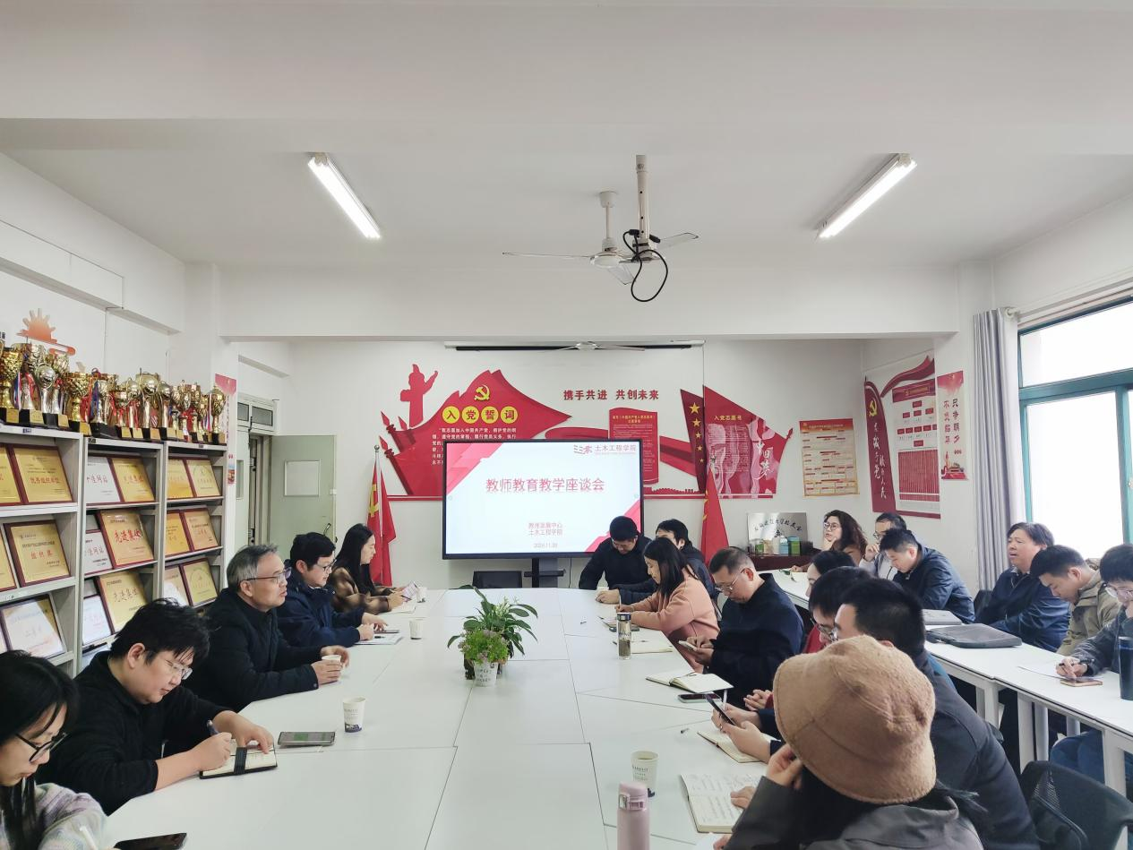本网讯 近日,为加强教学管理,提高教学质量,及时了解师生在教育教学过程中遇到的困难和疑惑,集思广益促进学院教育教学工作高质量发展,学院开展了教师、学生教育教学座谈会。教师座谈会联合学校教师发展中心开展,主任段宗志、副主任胡大洋和相关科室老师与各系20余名骨干教师参加交流;学生座谈会各专业班级学生代表共30余人参加。两场座谈会均由土木工程学院副院长施国栋主持。