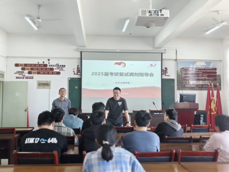 本网讯 为帮助我院考生精准把握政策、提高调剂成功率,近日,土木学院举办考研复试调剂指导会,通过“政策解读+经验传承+个性辅导”等方式,为考生提供全链条支持,助力考生跨越“最后一公里”。