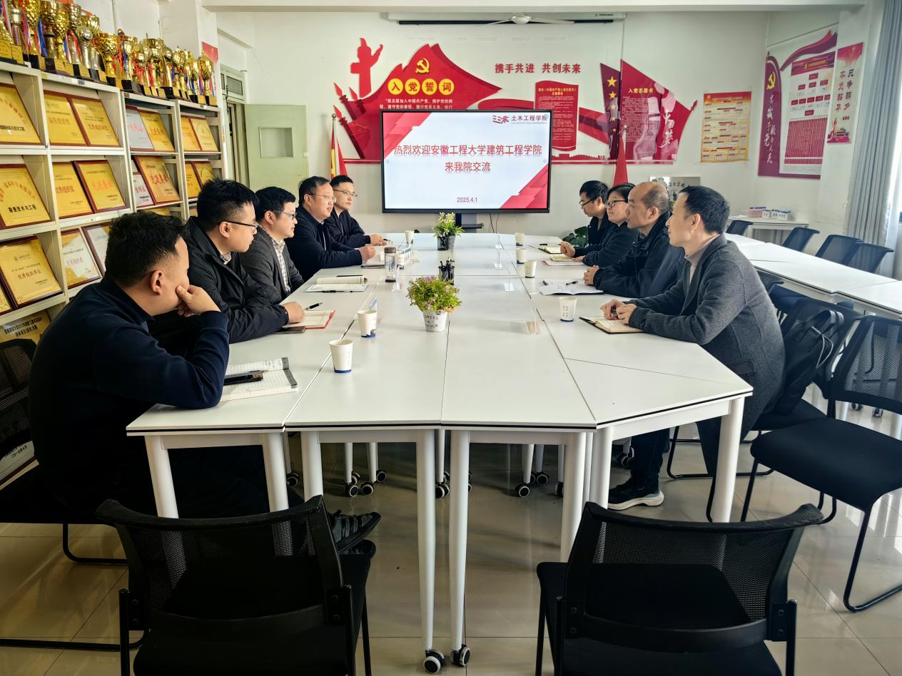 本网讯  41日,安徽工程大学建筑工程学院副院长张明一行来我院交流调研智能建造专业申报相关工作。土木学院副院长施国栋、建工系、教学办和相关辅导员老师参加交流,交流会由施国栋主持。
