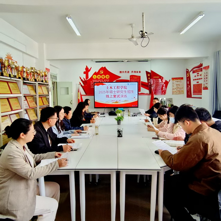 本网讯  为了安全、平稳、有序做好土木工程学院2025年硕士研究生招生调剂复试录取工作,43日,土木工程学院组织开展了2025年硕士研究生招生调剂线上复试演练,土木工程学院领导、复试专家组、组长秘书、助理组、考务组、监督组、后勤保障组、设备保障组、网络保障组等相关人员参加了招生调剂线上复试演练。