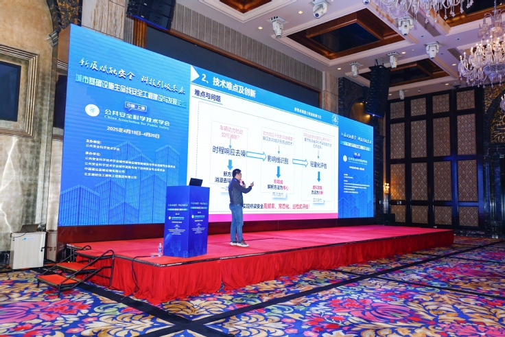 论坛期间,专家学者围绕城市基础设施生命线安全建设展开了多维度、深层次的技术交流与学术探讨,共有42位来自全国的专家学者分享了各自研究领域的最新成果。城市基础设施智能建造与安全运维专业委员会委员(CAPS)、城市生命线工程安全专业委员会委员(CECS)、土木学院周宇副教授应邀担任分会场主持人,并作“基于影响线的梁桥承载能力快速检测方法研究”的主题报告,汇报了团队近年来在桥梁结构安全评估与智慧运维领域的科研进展,分享了学院在安徽省城市生命线桥梁安全工程建设期间发挥的积极支撑作用。