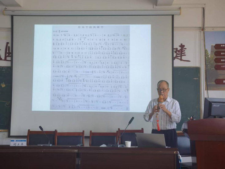 分享会尾声,何夕平教授取出一支葫芦丝,轻吹一曲《月光下的凤尾竹》。悠扬的旋律如潺潺溪流,瞬间将全场带入德宏的月光之下。一曲终了,掌声雷动,这不仅是支教的背景音,更是边疆人民对教育的深情礼赞。