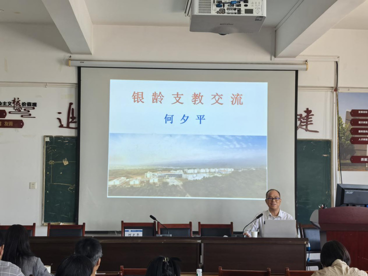 国家银龄教师行动计划由教育部等十部门联合推动,旨在通过“银龄人才+边疆支教”模式,缓解中西部及民族地区职业教育师资结构性短缺问题。根据计划,德宏州作为面向南亚东南亚的开放前沿,被列为重点支援区域,重点招募具有副高级及以上职称的退休教师,破解区域教育发展不均衡难题。土木学院何夕平教授作为国家银龄教师行动计划首批参与者,声情并茂地介绍了德宏傣族景颇族自治州及德宏师范学院的基本情况,传达了德宏师范学院对我院银龄教师的关心与期待,并结合其近两学期在边疆支教的实践,回顾其投身国家银龄教师行动计划、扎根边境支教的实践成果与深刻感悟。