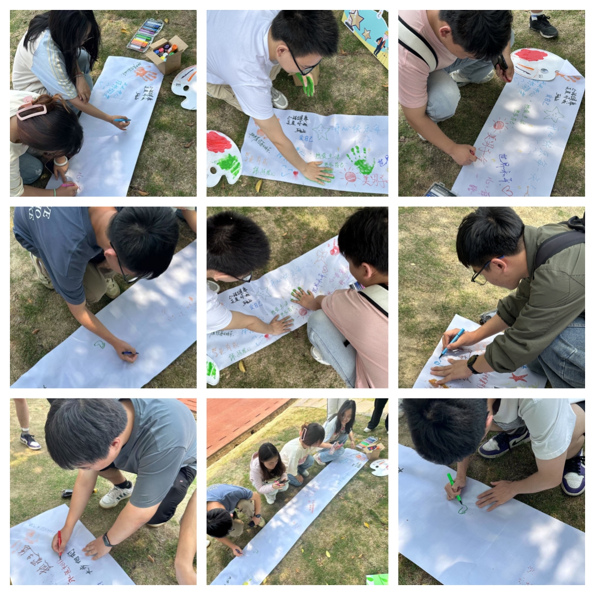 涂鸦横幅区域则是一片欢乐与创意的海洋。活动现场,巨大的白色横幅铺展开来,参与者们纷纷拿起画笔,用缤纷的色彩在横幅上描绘出心中的美好愿景。有人画下灿烂的太阳和绽放的花朵,象征着积极乐观的生活态度;有人写下 “心有繁花,一路生香”的励志话语,表达对美好生活的向往。大家还纷纷在横幅上印下五彩班澜的掌印,一个个掌印如同跳动的音符,汇聚成一曲关于爱与成长的乐章。