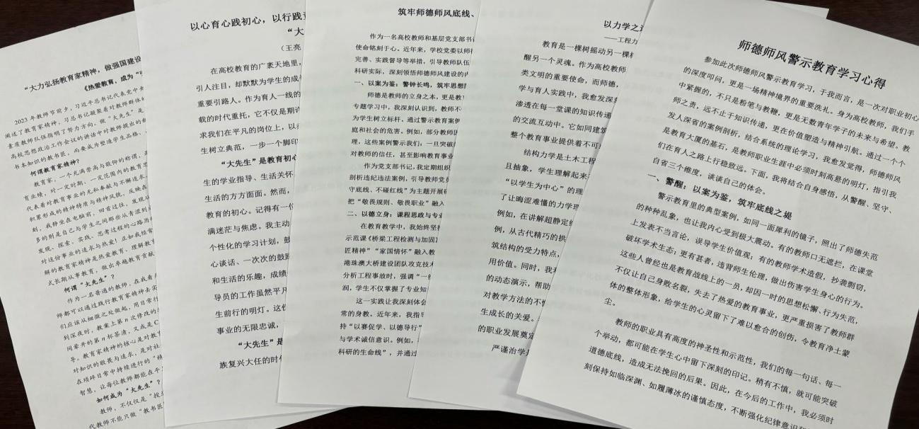 此次师德师风主题征文比赛的成功举办,是学院加强师德师风建设的重要举措,有利于进一步激发教职工对教书育人工作的重视与思考,也在校园内营造了崇尚师德、弘扬师风的良好氛围。下一步,学院将持续推进师德师风建设工作,通过多种形式的活动,引导全体教师以德立身、以德立学、以德施教,为培养德智体美劳全面发展的社会主义建设者和接班人奠定坚实基础。(文/图:王姗姗;一审:叶训;二审:马智鑫;三审:王媛)