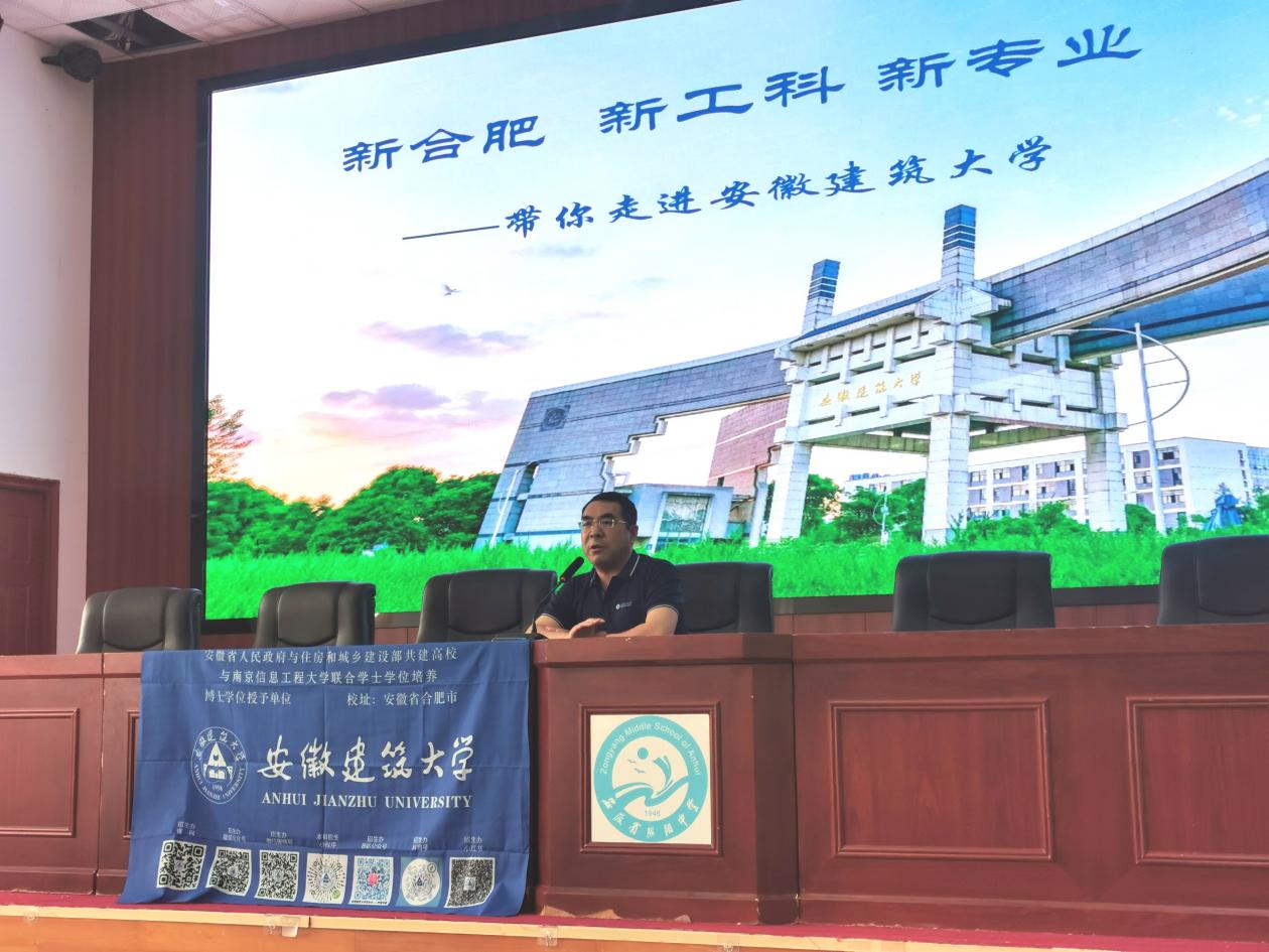 本网讯 为切实做好2025年招生宣传工作,进一步提升生源质量,6月27日,校党委副书记、校长蔡国军率队,后勤管理处党总支书记姚勇、土木学院院长张宁、教务处副处长张广斌、建规学院副教授陈宜瑜等一行人赴枞阳中学开展2025年本科招生宣传工作。