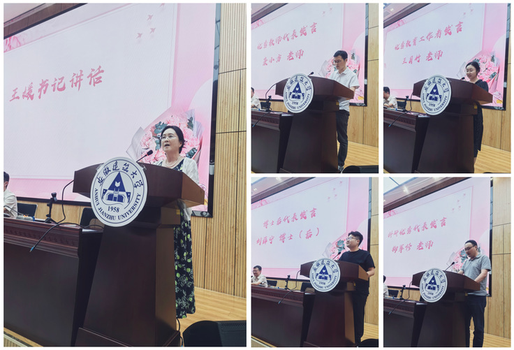 获表彰的优秀教师康小方、优秀教育工作者王月竹、博士后代表刘薛宁、科研优秀代表柳军修依次发言,结合各自岗位实际,分享了在教学育人、科学研究与学生工作中的生动实践和深刻体会。他们以真挚而平实的语言,表达了对教育事业始终如一的热爱与坚守,以及对学子们成长成才的深切关怀与悉心引导。