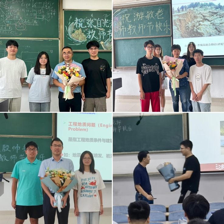 除了室外的集中活动,课堂里的惊喜同样动人。在一些授课教室,当老师们如常走上讲台准备开讲时,早已悄悄准备好的学生代表突然起身,手捧包装精美的鲜花走向讲台,全班同学随之齐声喊道:“老师,教师节快乐!感谢您的悉心教导!” 突如其来的祝福让老师们瞬间露出惊喜笑容,有的老师愣神片刻后轻轻接过鲜花,笑着说 “谢谢孩子们,这是今天最特别的礼物”;有的老师则忍不住眼眶微红,与同学们分享起相处中的温暖小事。学生们还趁机递上提前写好的便签,上面写着 “感谢您把复杂的力学公式讲成我们能懂的‘通关秘籍’”“每次实验课您耐心指导的样子,我们都记在心里”,简单的话语里满是对课堂点滴的珍视,课堂里的掌声与笑声,成了教师节最动听的旋律。