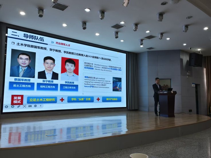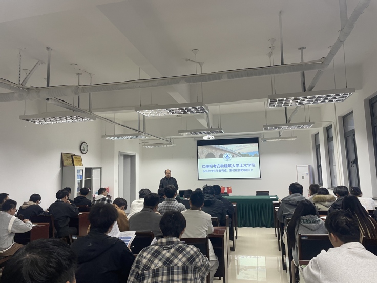 本网讯 为切实做好2026年土木工程学院硕士研究生招生工作,继线上直播间院长研究生招生宣传之后,近日,土木工程学院组建了三组由学院领导、研究生导师代表、专业系主任等组成研究生招生宣讲团,分别在校园内、宿州学院、蚌埠学院等场地,面向2026届本科毕业生开展了研究生招生宣讲活动。