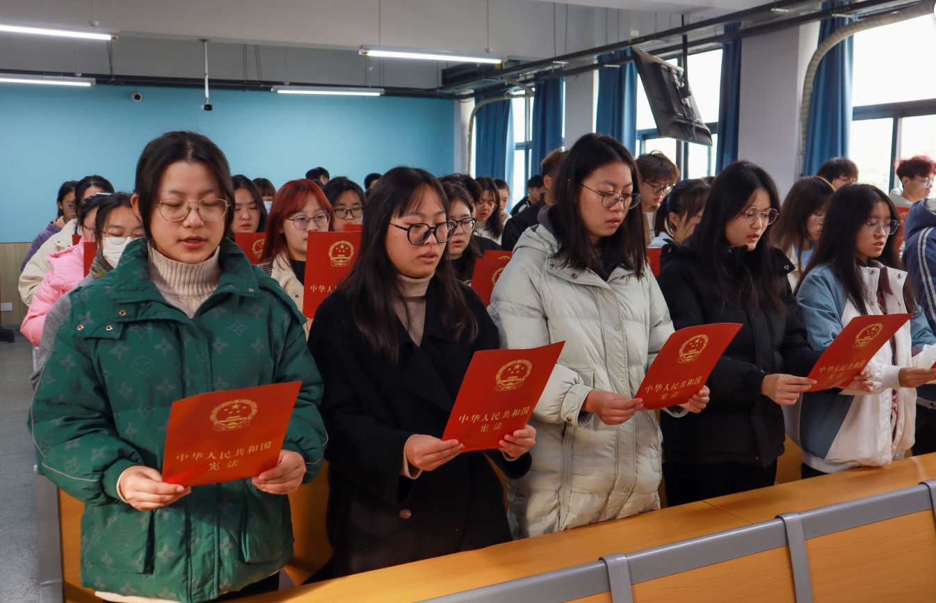 本网讯  12月4日是第十个国家宪法日,为弘扬宪法精神,增强宪法意识,12月4日上午,学校组织师生代表近400人分别在南北校区的会场参加2023年国家宪法日教育系统组织的“宪法晨读”直播活动。