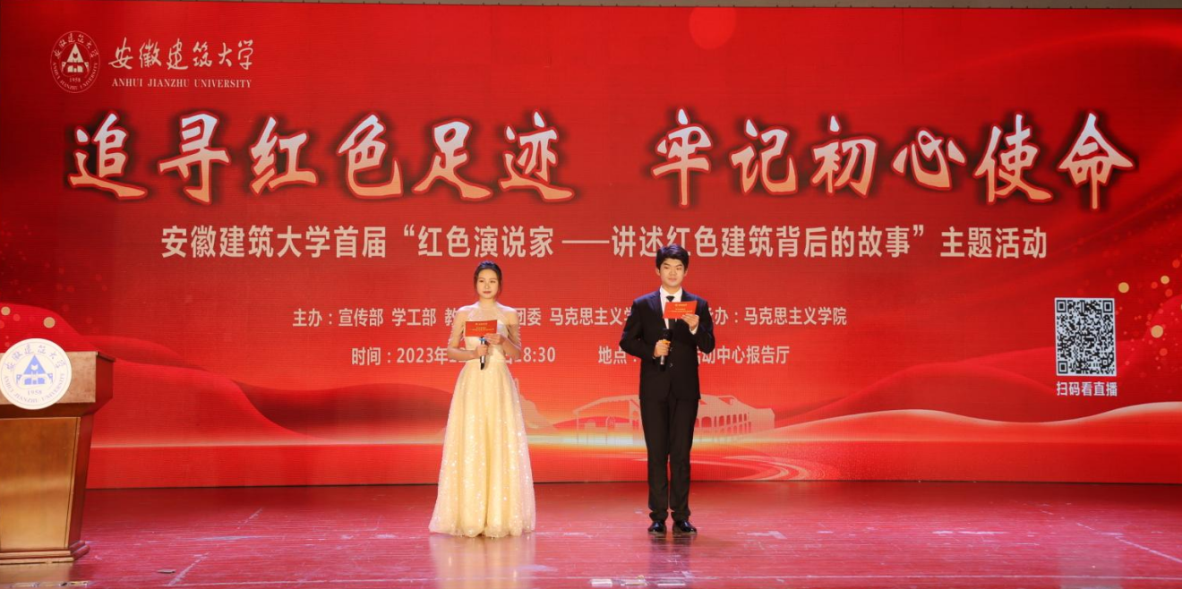 经典伟大的红色建筑、绘声绘色的红色故事、感人至深的红色演说……从竞争激烈的初赛、复赛再到决赛,来自11个学院的12支队伍进入决赛。各参赛队伍依托安徽省丰富的红色建筑资源,在各种艺术化的表达方式辅助下深情述说风云激荡的峥嵘岁月里,发生在江淮大地这片红色热土上惊心动魄的故事和可歌可泣的壮丽诗篇……现场气氛热烈,掌声不断。