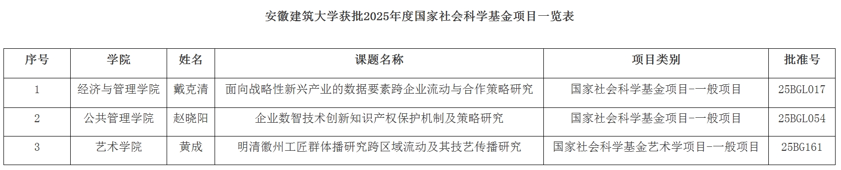 本网讯 近日,全国哲学社会科学工作办公室公布了年度国家社科基金年度项目立项结果,学校获批一般项目三项。