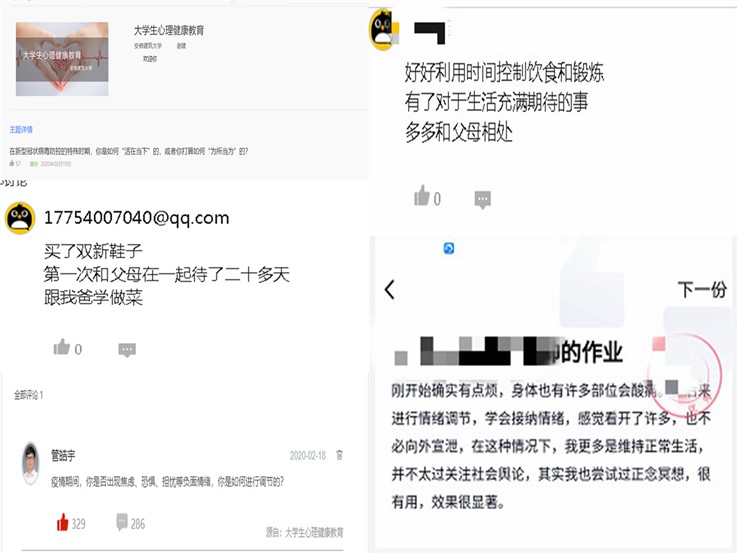 在这场突如其来的疫情面前,学生会出现各种情绪反应,上课时老师通过提问,互动,让听课学生充分自在地表达自己在疫情期间的情绪状态。学生在直播间通过文字或者语音的形式,讲述了自己从一开始的担心紧张到后来的积极面对,从分享中,我们也了解到大多数学生的情绪比较理性平和,对战胜疫情充满信心。