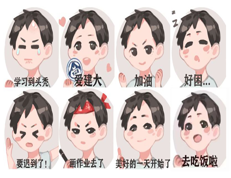 18级环境设计专业孔德姣创作的表情包《匆匆那年夏天》以“青春”为主题,把自己疫情期间的种种状态用表情包的方式记录下来,每一张表情都代表了不同的情绪与感悟,希望每个人的青春里都拥有一份快乐和奋斗。