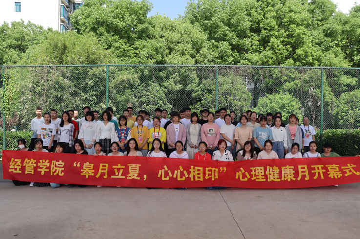 本网讯 为更好地普及心理健康教育知识,进一步提高师生的心理健康水平,共同构建和谐美丽平安校园, 近日,经管学院在北区操场举行“皋月立夏心心相印”心理健康月系列活动开幕式。