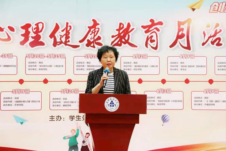 本网讯5月12日,我校“师生健康中国健康”主题健康教育系列活动之——第十七届心理健康教育月开幕。校党委副书记吕萍出席开幕式并致辞。学工部(学生处)负责人、各学院分管学生工作副书记、心理辅导站老师、学工部(学生处)全体工作人员和学生代表近200人参加了活动。开幕式由党委学工部副部长汤娜主持。
