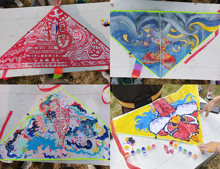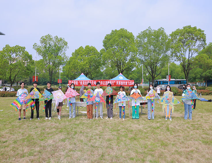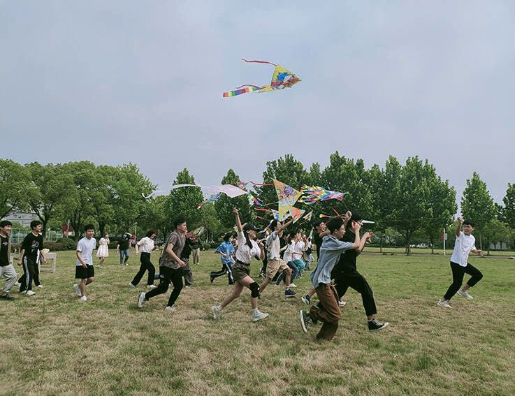 同学们将自身的专业创作能力与娱乐活动相结合,发挥创新精神,展现团队力量,制作了各式各样颇具特色的风筝,在欢声笑语中将风筝送上蓝天,远眺蓝天白云,舒展身心。