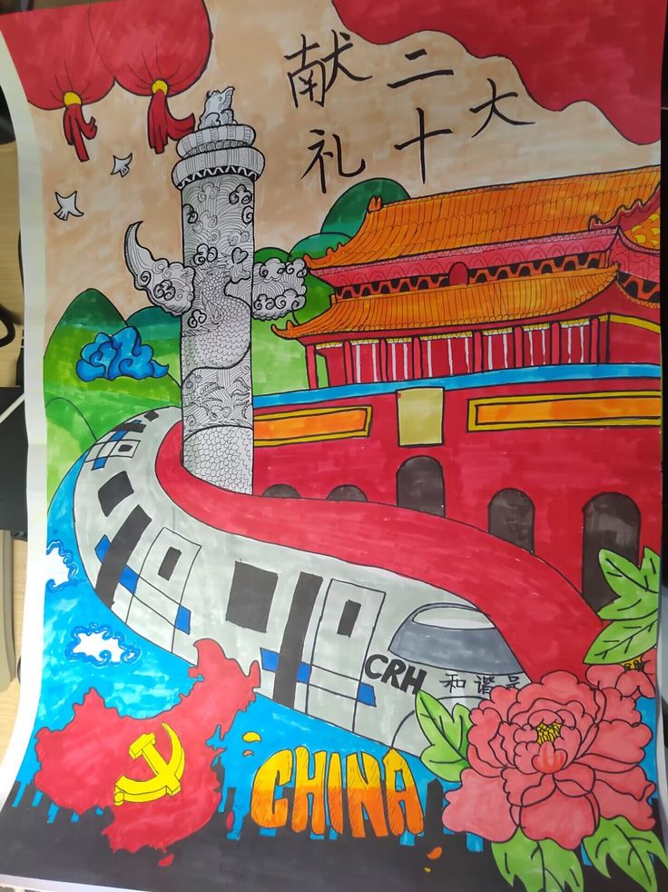 学生们以笔抒情、以画传意,运用丰富的素材和多元色调,结合党的二十大报告相关主题和金句进行宣传画及海报设计创作,通过视觉对比、虚实结合等手法制作宣传海报,宣传党的二十大精神。