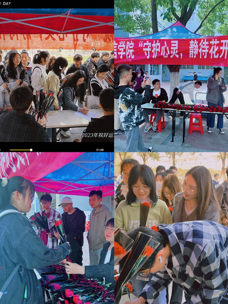 3月8日中午,学院心理辅导站在南食堂门口搭建好帐篷,并将精心包装好的鲜花摆放整齐,静候女生们的到来。“青春永驻,快乐常在!”“天天开心!”一朵朵鲜花,一声声祝福,女生们收到鲜花后,满心欢喜,充分感受到了这份独有的浪漫与温暖。
