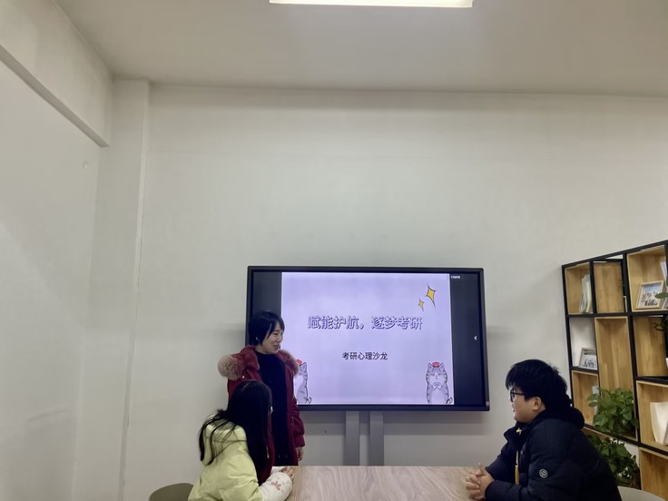 12月19日,在F305举办“赋能护航,筑梦考研”考研心路活动,沙龙为即将面临考研压力的学生提供了一个交流和学习的平台,大家纷纷提出了自己在备考中遇到的各种问题和困惑,大家在老师的带领下以压力圈的纸笔练习梳理了备考中遇到的各种压力,并对压力进行排序,分享了自己如何应对这些压力的技巧和方法,助力考研学子以更加积极的心态迎接即将到来的研究生入学考试。