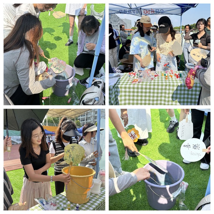 活动中,同学们通过教学视频学习漆扇相关的技巧与方法,增加对漆扇工艺的了解;接着,同学们根据自己的想法和创意进行创作,通过使用各种工具辅助进行调色,渲染和刻画漆扇,来展示和培养同学们的创造性和动手能力;作品制作完成后同学们积极展示自己的漆扇作品,并且相互借鉴,学习交流;活动结束后,同学们将作品拍照纪念,感悟传统文化的魅力。