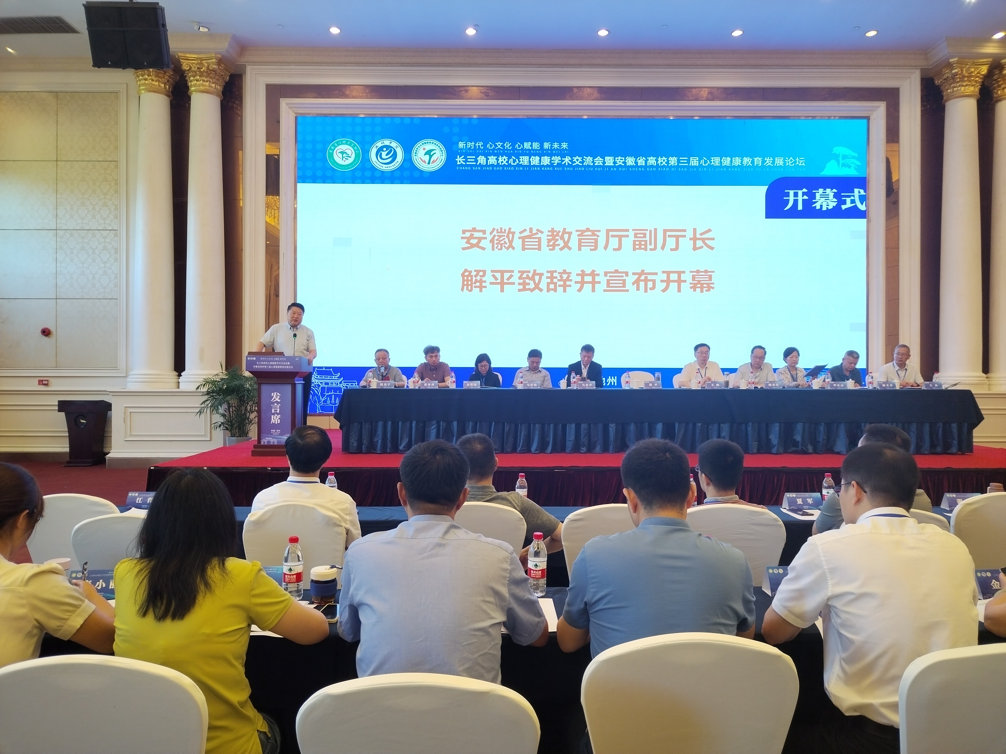 省教育厅一级巡视员解平致辞并宣布开幕。他介绍了安徽省高校整体心理健康教育工作现状、特点以及推进心理健康工作的多项重要举措。他指出,高校心理健康教育工作要加强宏观指导、强化工作督查机制,坚持效果导向、问题导向,有效建立预防机制、发现机制、应对机制、联动机制、保障机制和责任机制,将心理育人工作落到实处。本次大会也是深入贯彻党中央精神和教育部、教育厅相关文件的重要举措,是一场高规格、高水平、高质量的盛会。他勉励全省心理学工作者牢记责任感、使命感、荣誉感,加强学习,扎实开展工作,为建设现代化美好安徽贡献心理学人的智慧和力量。