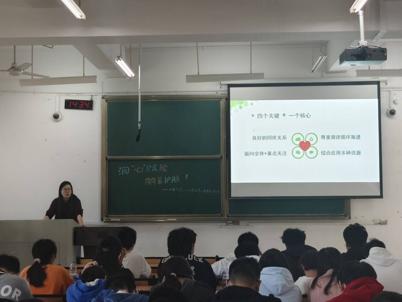 本网讯 为全面推进大学生心理健康教育工作,切实加强大学生心理委员队伍建设,增进心理委员对其工作的理解,掌握心理自助、朋辈互助等工作基本技能,11月6日下午,土木学院大学生心理辅导站于逸夫楼5220教室面向学院全体心理委员及寝室心理信息员开展专题培训,近80名心理骨干参加了本次培训。