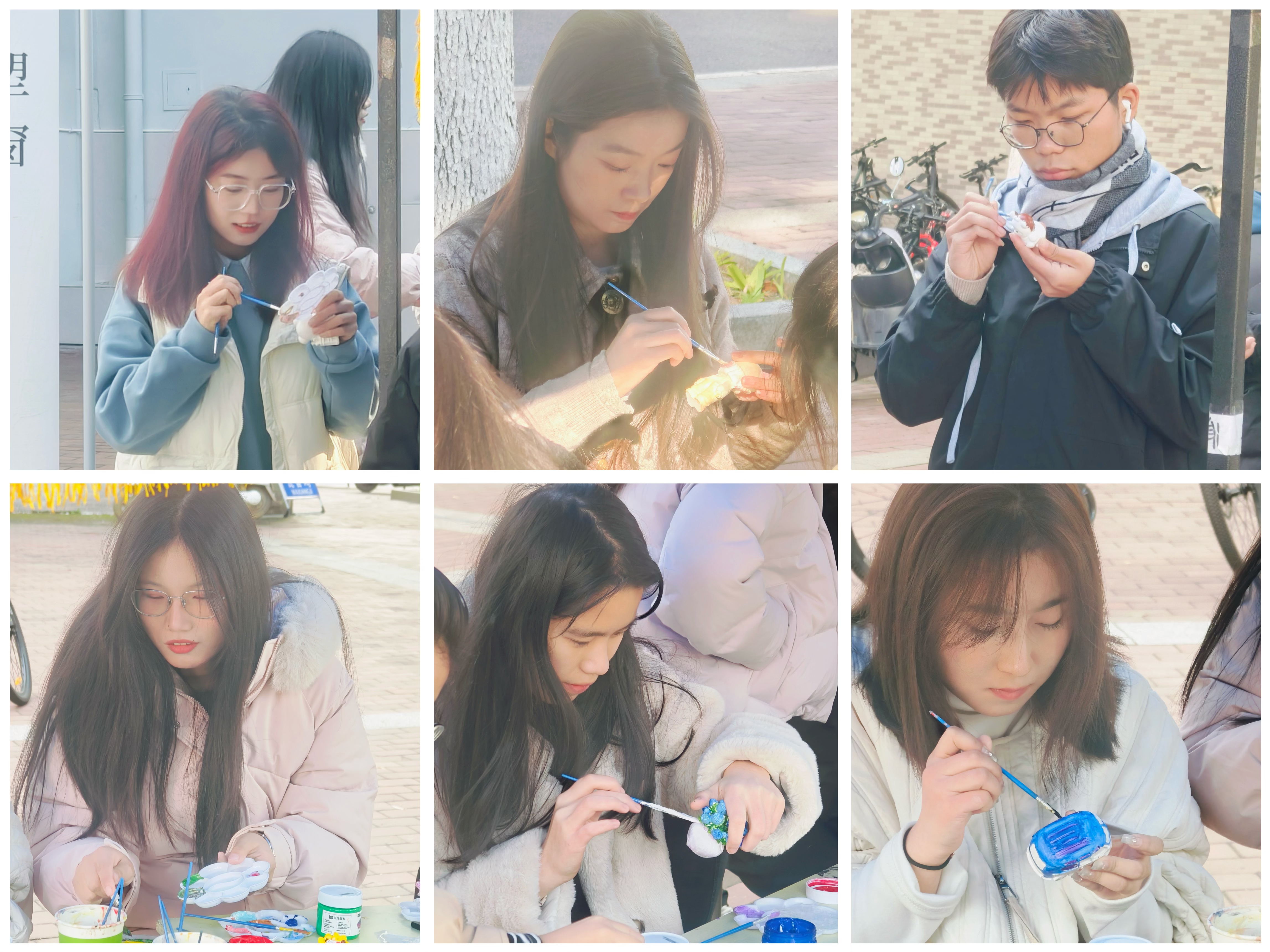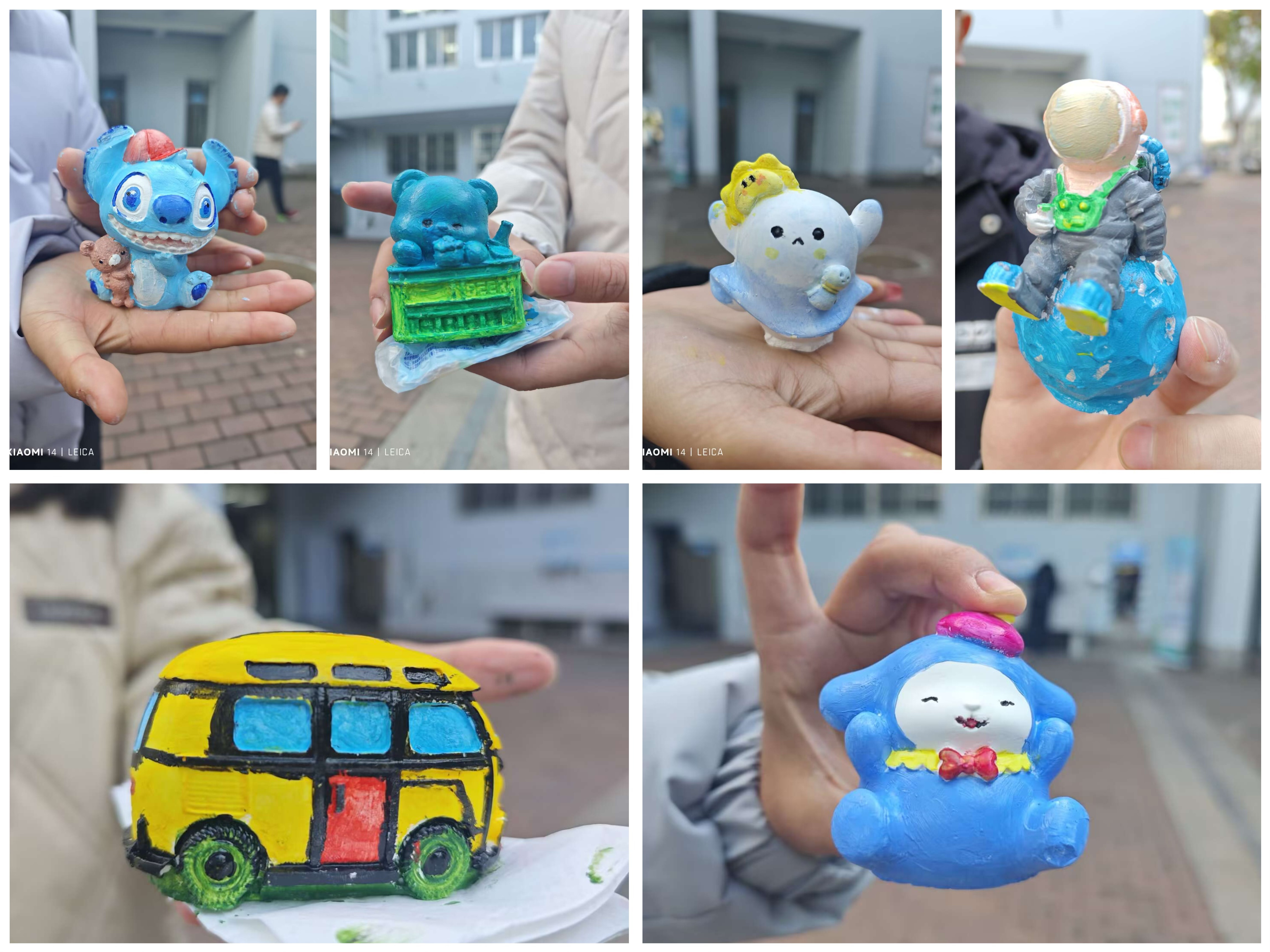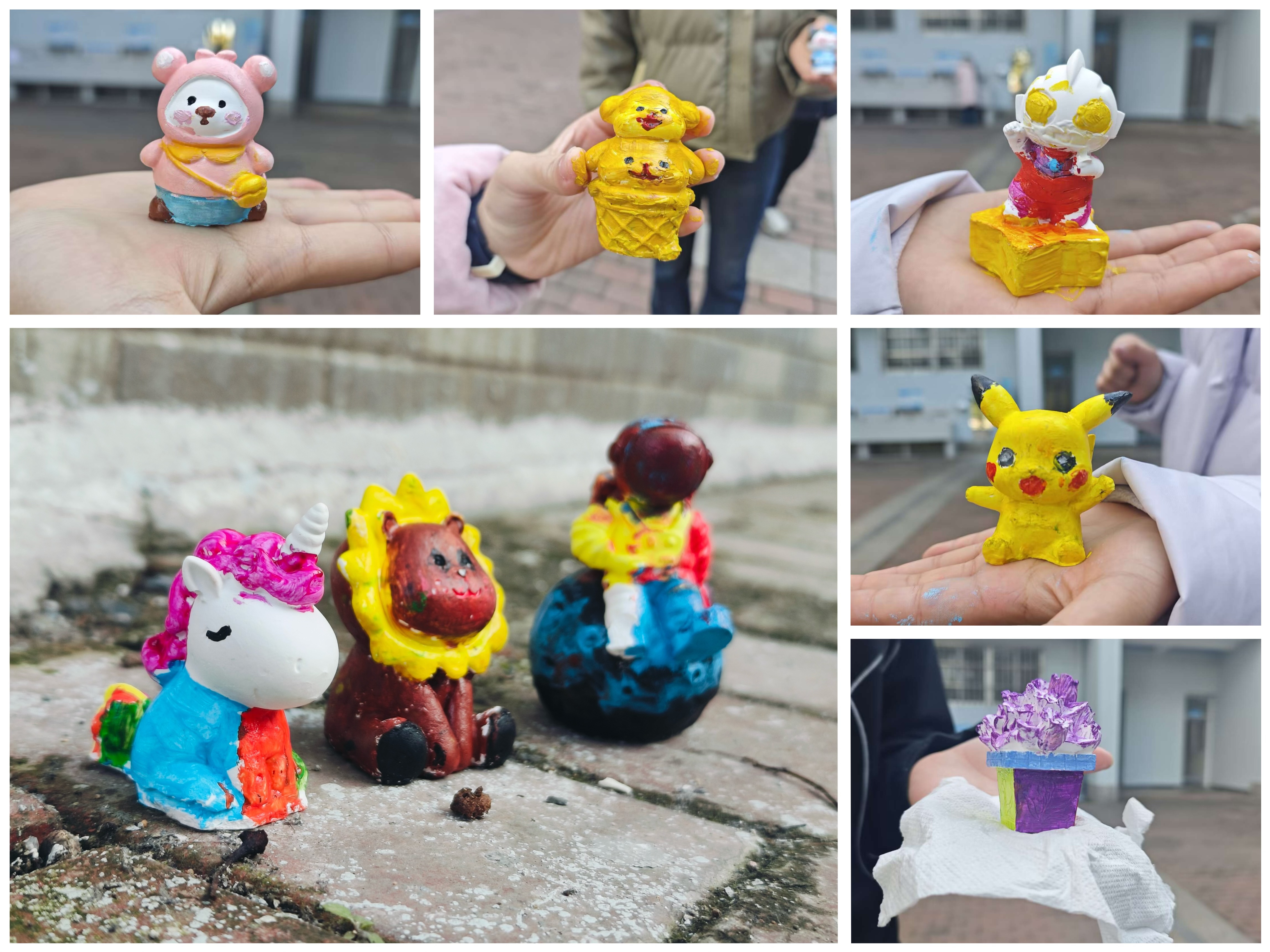 学院学生会为本次活动准备了石膏娃娃、画笔、颜料等。感兴趣的同学们可以在在众多石膏娃娃之中挑选一个,在纯白的石膏娃娃上尽情挥洒创意。活动现场气氛轻松愉悦,有的同学眉头微皱,似乎在思考颜色的搭配;有的同学挥动画笔,沉浸在色彩的海洋里;有的同学在与朋友讨论,在交流中碰撞灵感的火花。经过大家的认真创作,一个个色彩丰富、栩栩如生的雕塑作品精彩呈现。