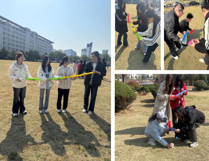 “桃蹊逐春 艺体同行”趣味运动会设置珠行万里、两人三足、趣味接力等运动项目。大家在珠行万里的球槽搭建过程中锤炼抗压能力,培养在压力下保持冷静思考的素质;在两人三足的步调协同中磨合同学间的默契与节奏感,提升沟通效率;在趣味接力的筷子运球操作之中增强专注力与稳定性,强化团队接力中的责任感与信任感。运动会通过将团队协作、情绪管理等心理素质培养融入运动竞技,让同学们在欢声笑语中释放压力、收获成长。