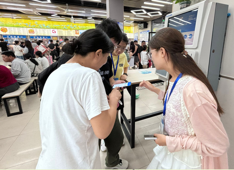 食堂设立“校园一卡通服务日”咨询点。活动现场,工作人员在每台圈存机醒目位置张贴“校园一卡通使用说明”和“新生校园卡充值须知”,主动走向前来办理业务的新生,耐心演示操作流程,协助新生完成密码修改、充值等操作,并解答大家在用卡过程中遇到的问题。通过面对面、手把手的服务,让新生在入校第一天就感受到便捷和温暖,更快融入校园生活。