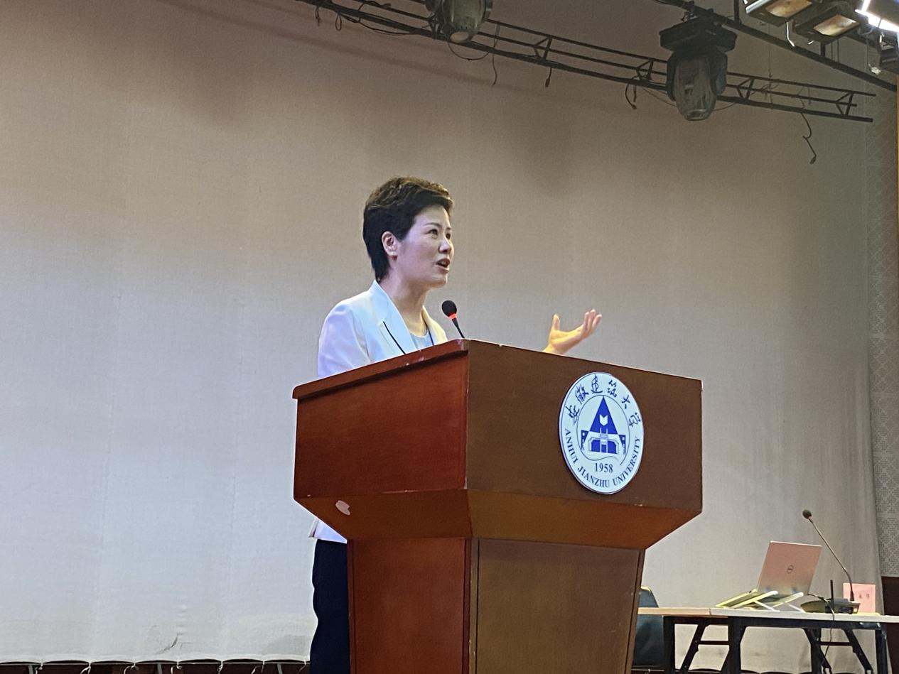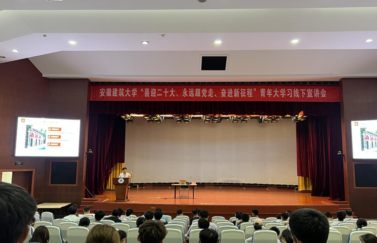 本网讯 为引导大一新生了解党的光辉历史,紧跟时代步伐,在新征程中建功立业,9月19日下午,学校以“喜迎二十大、永远跟党走、奋进新征程”为主题的新学期“青年大学习”在大学生活动中心启动,中共安徽省委党校马克思主义学院郝永华教授以“坚持人民至上”为主题做第一场报告。