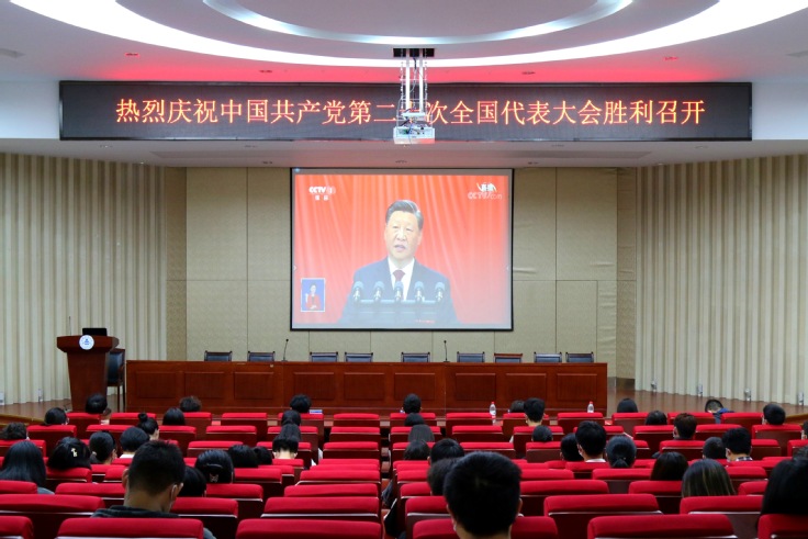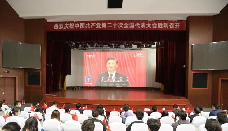 学校在南校区实验综合楼二楼报告厅召开党委理论学习中心组2022年第十五次(扩大)学习会,全体校领导和副处级以上领导干部集中收听收看习近平总书记在中国共产党第二十次全国代表大会上的报告,第一时间学习领会大会精神。