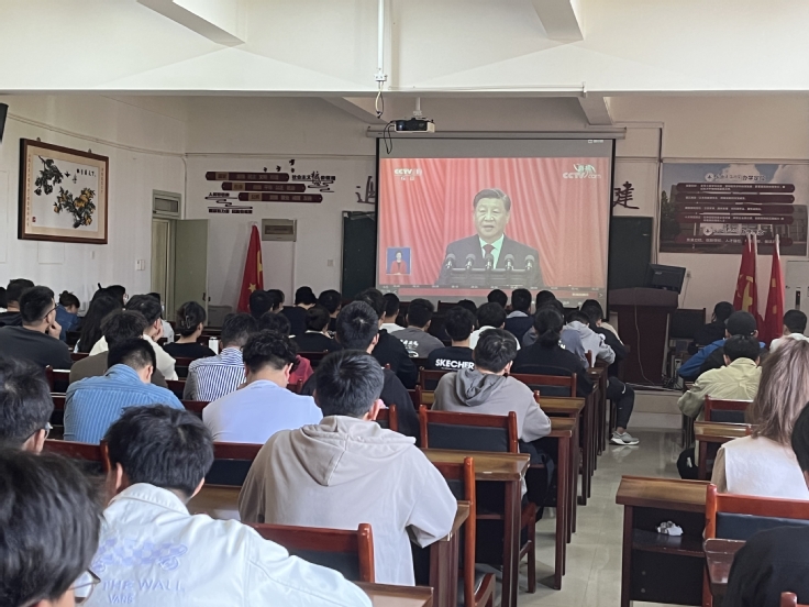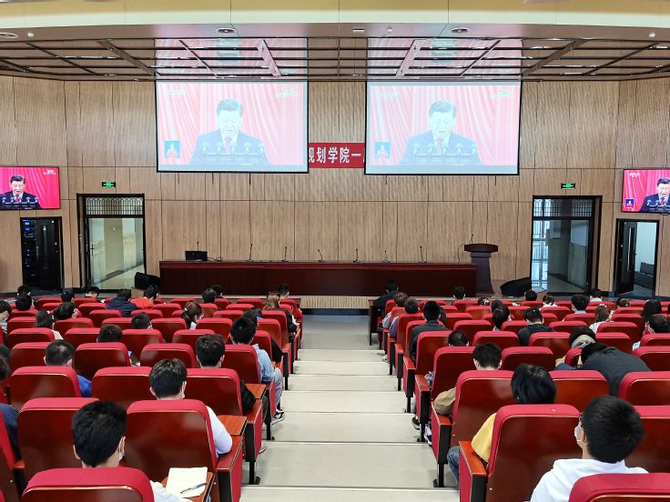 校团委组织学生团员、团干、学生干部和代表等在校学生在南区大学生活动中心报告厅、北区图书馆报告厅集中收听收看。