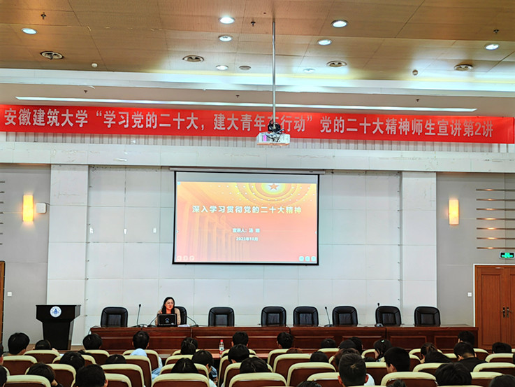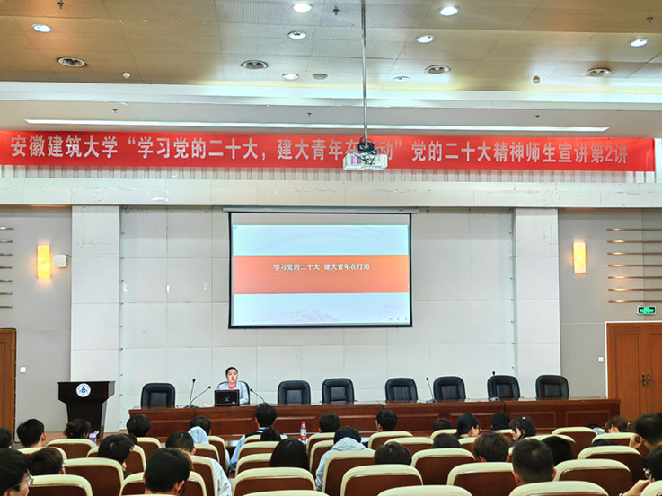 本网讯  1025日,“学习党的二十大,建大青年在行动”党的二十大精神师生宣讲团(第2讲)走进建筑与规划学院。学工部负责人,建筑与规划学院辅导员、学生代表,学工部有关工作人员200余人参加宣讲会。