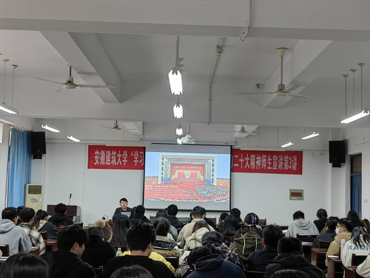 本网讯  日,“学习党的二十大,建大青年在行动”党的二十大精神师生宣讲团走进环境与能源工程学院。环境与能源工程学院党委书记、材料与化学工程学院辅导员、学生代表、思政委员等100余人参加宣讲会。