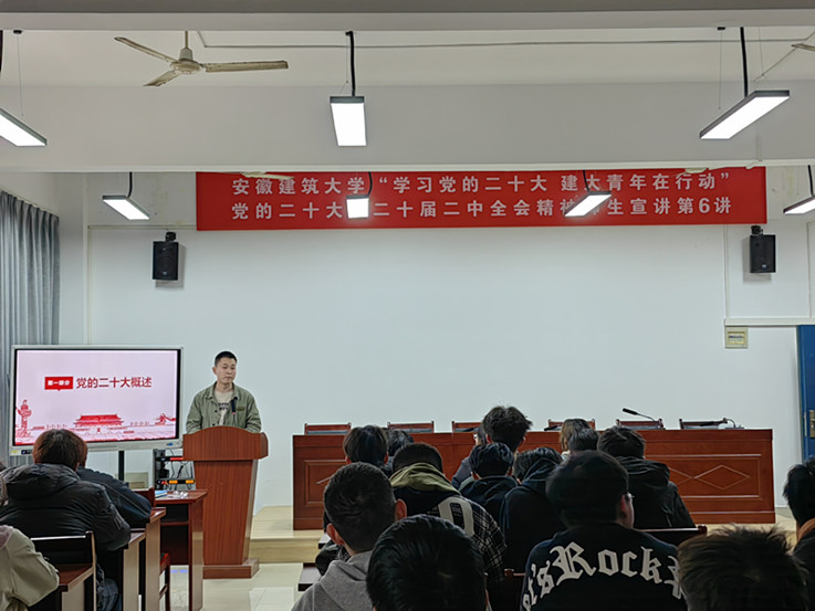 本网讯 3月26日,“学习党的二十大,建大青年在行动”党的二十大、二十届二中全会精神师生宣讲团走进机械与电气工程学院。机械与电气工程学院、环境与能源工程学院辅导员,学生代表、思政委员等100余人参加宣讲会。