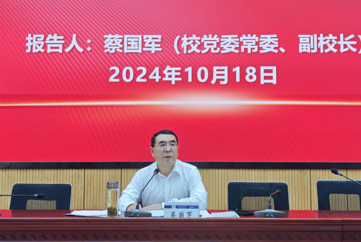 宣讲会上,蔡国军以《进一步全面深化改革 推进中国式现代化——学习贯彻党的二十届三中全会精神》为主题,从党的二十届三中全会重要地位和意义、深入学习领会习近平总书记在全会上的重要讲话精神、全面准确理解《中共中央关于进一步全面深化改革、推进中国式现代化的决定》提出的进一步全面深化改革重大举措、深入学习贯彻全会关于深化教育综合改革的新部署新要求、全力以赴抓好全会精神贯彻落实等五个方面,对党的二十届三中全会精神进行了深入系统解读,其中重点详细解读了全会关于教育综合改革的新部署、新要求。