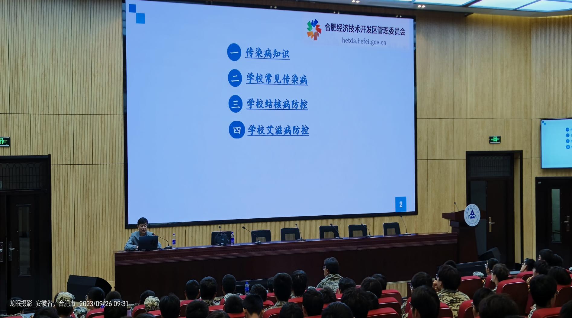 为贯彻执行《安徽省教育厅等五部门关于全面加强和改进新时代学校卫生与健康教育工作的通知》相关要求,做好新生健康知识科普工作,提高学生安全健康意识,养成文明健康的生活方式,校医院邀请经开区管委会公共卫生服务中心副主任张伟老师于9月26日上午在南区实训楼报告厅举办2023级新生入学健康安全教育讲座。