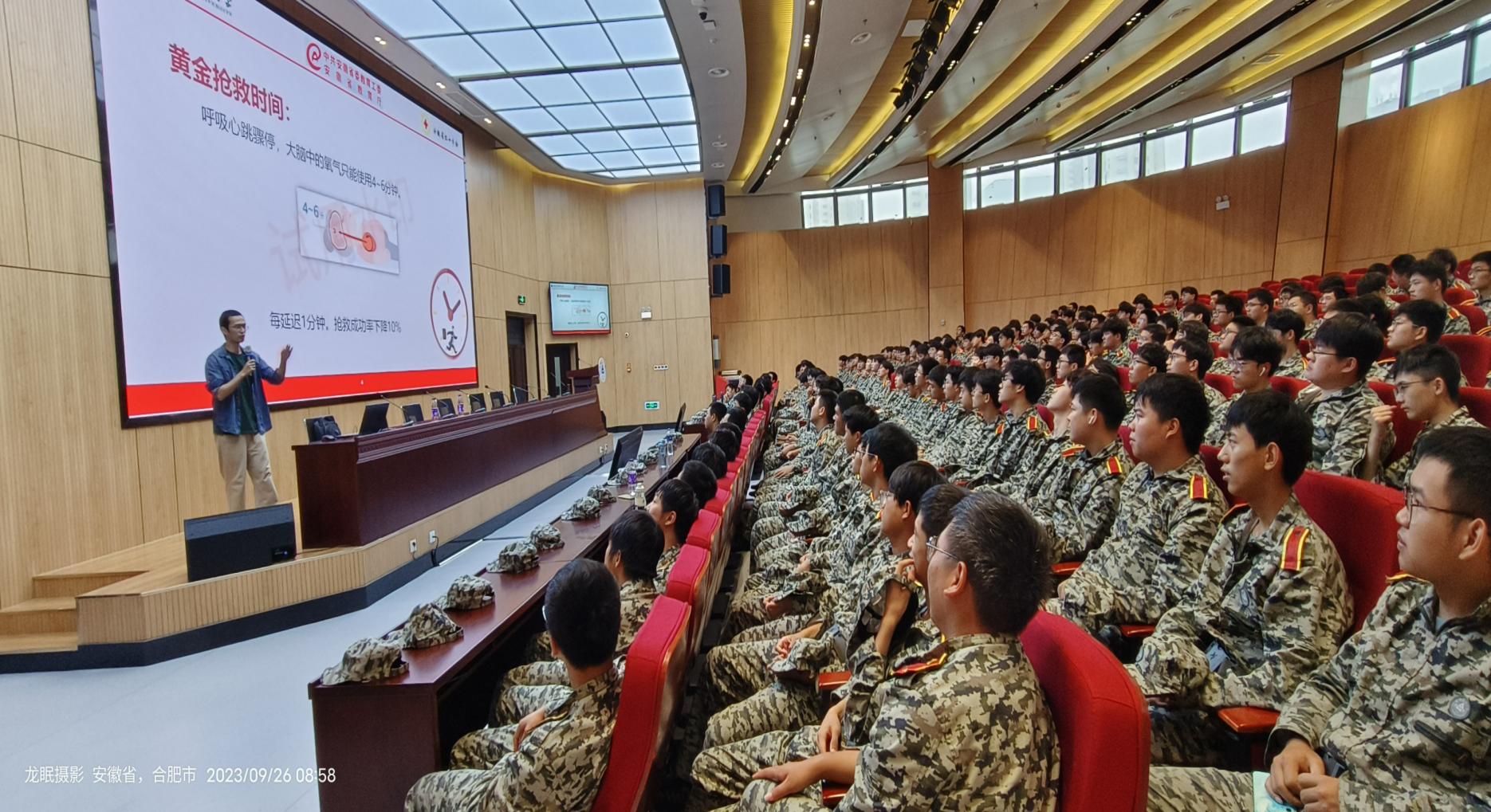 讲座包含两部分,第一部分为心肺复苏急救知识讲解,由校医院预防保健科医生唐寅主讲,首先介绍了及时心肺复苏的重要性,接着讲解了心肺复苏的步骤及注意事项,如何判断意识、呼救求援方法、呼吸判断、调整体位注意事项、胸外按压的正确部位、按压的标准、人工呼吸的正确方法及复苏成功的判断等,并且介绍了AED的使用方法。增强了学生突发事件的应急能力,掌握了正确的应急救护方法,同时还提升了大家对生命的敬畏感和主动施以援手的社会责任感。