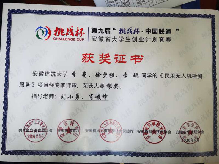 本网讯 近日,第九届“挑战杯”安徽省大学生创业计划竞赛结果揭晓,研究生院再创佳绩。全校共选拔出10件作品参加省级决赛,经过书面评审、项目展示等环节,最终,研究生院选送的《徽派古建筑木构架修缮保护及利用技术》《民用无人机检测服务》项作品获得银奖,《校园疫情安全防控--口罩目标识别和轨迹预测》获得铜奖。