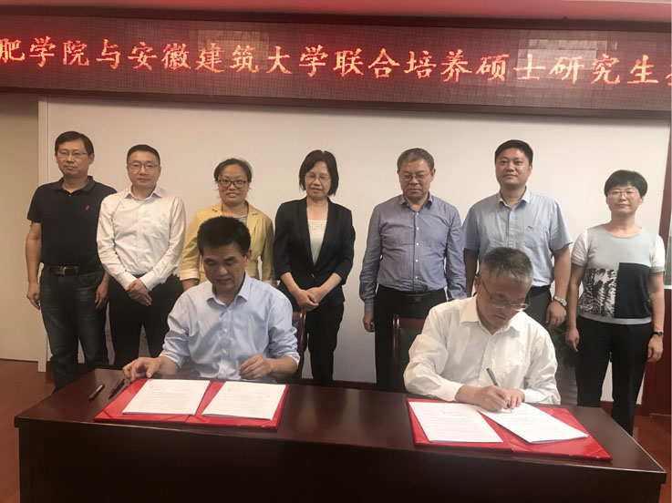 本网讯 9月27日下午,副校长丁克伟、研究生院院长雷庆关等一行四人赴合肥学院签订研究生联合培养协议。合肥学院校长吴春梅、副校长卢平以及相关部门领导接待了丁克伟一行,签约仪式由卢平主持。