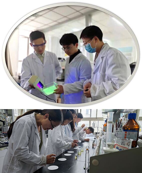 本次活动由研究生院策划组织,材化专业的研究生具体实施,结合相关专业知识刻苦钻研,制作了完备的活动方案。活动中,研院学子分工合作,对硅源材料、乙二胺、乙二醇等按一定量配比混合放入仪器,通过长达十个小时紧张而又严谨的操作,经过高温高压反应、抽滤、透析、冷冻干燥、溶剂反应等工艺得到一种含有荧光物质的荧光材料,利用这种材料在滤纸上展示出“中国共产党1921-2021”的字样,以此礼献中国共产党的百年华诞。本次活动设计精细、准备充分、历时良久、操作复杂,是研院学子将与时俱进创新意识、全面系统的专业知识、吃苦耐劳的钻研精神、爱党爱国的家国情怀高度集中的体现,以独特的形式表达对建党100周年诚挚的祝福与敬意。