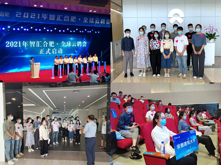 启动仪式上,安徽省委常委、合肥市委书记虞爱华首先致辞,表达了对此次“智汇合肥”全球云聘会的期待,希望通过本次活动,能吸引大批人才来肥就业创业,进一步强化“产业强市”“人才强市”战略。随后,合肥市高校、企业和学生代表相继发言。最后,莅临会议的政府领导和与会代表共同点亮云聘会平台,宣告本次2021“智汇合肥全球云聘会正式启动。启动仪式结束后,我院师生共同参观了哈工大机器人(合肥)国际创新研究院、蔚来汽车(安徽)有限公司、经开区人力资源中心、安徽创新馆和长鑫储存技术有限公司。