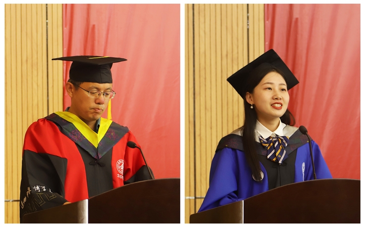 黄显怀真挚祝贺研究生们顺利毕业,并向所有为同学们成长付出心血的师长、父母致以崇高的敬意和衷心的感谢。黄显怀表示,作为时代新人,你们肩负使命,走出校门后希望大家:一要坚定信念、追梦铸魂;二要不尚虚谈、多务实功;三要乘风破浪、砥砺前行。黄显怀勉励大家在逐梦前行的路上,发扬“越是险阻越向前”的拼搏精神,锤炼“千磨万击还坚劲”的坚韧品格,从平凡事业中实现不平凡的人生,在持续奋斗中乘风破浪放飞青春梦想、砥砺前行书写青春华章。最后,黄显怀希望大家继续关注母校发展,常回家看看。