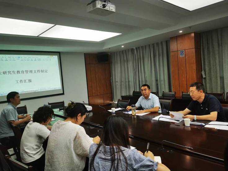 会上,研究生院汇报了学校博士研究生招生、培养管理制度建设的工作进展情况。重点探讨了学校博士生导师遴选标准、博士生招生细则等内容。