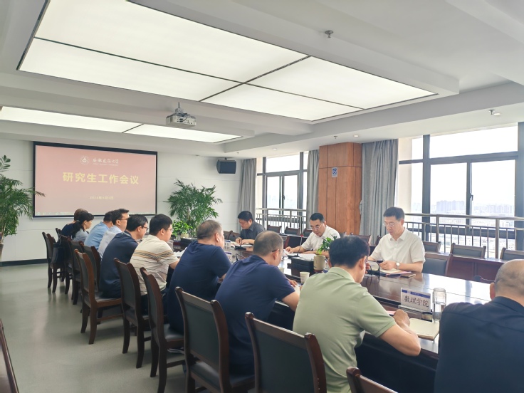 本网讯  9月3日上午,学校在南校区徽风楼21楼第三会议室召开2024年研究生工作会议。会议由校党委常委、副校长蔡国军主持,研究生培养单位负责人和研究生院全体工作人员参加会议。